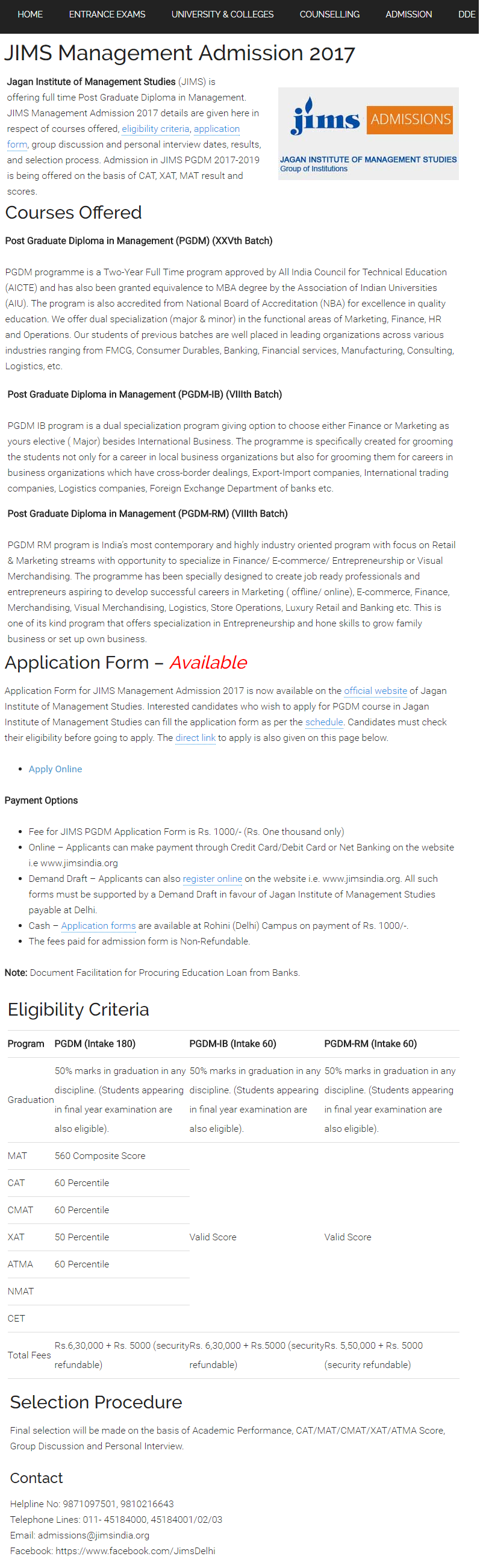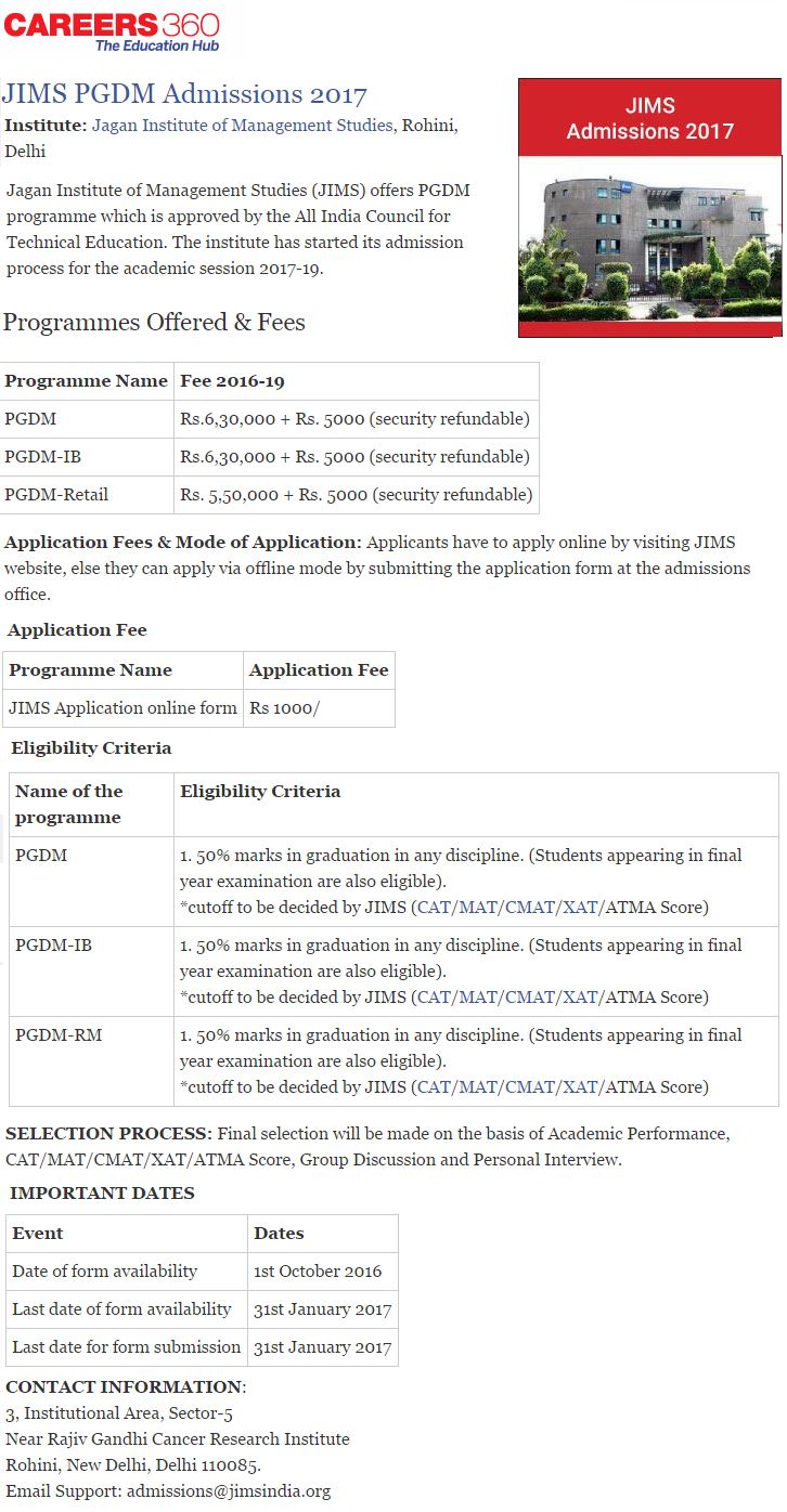 | JIMS Rohini PGDM Admission