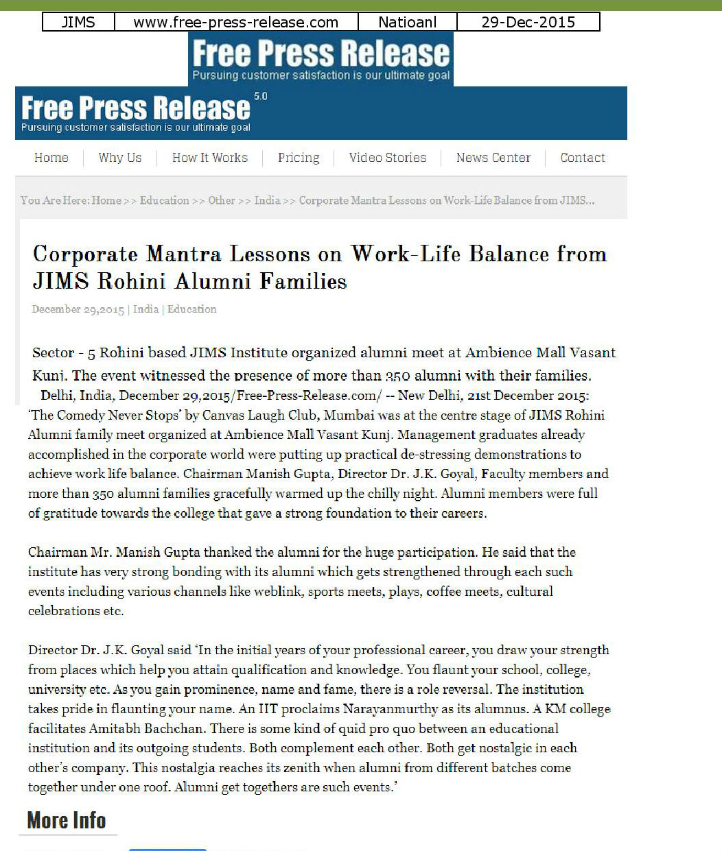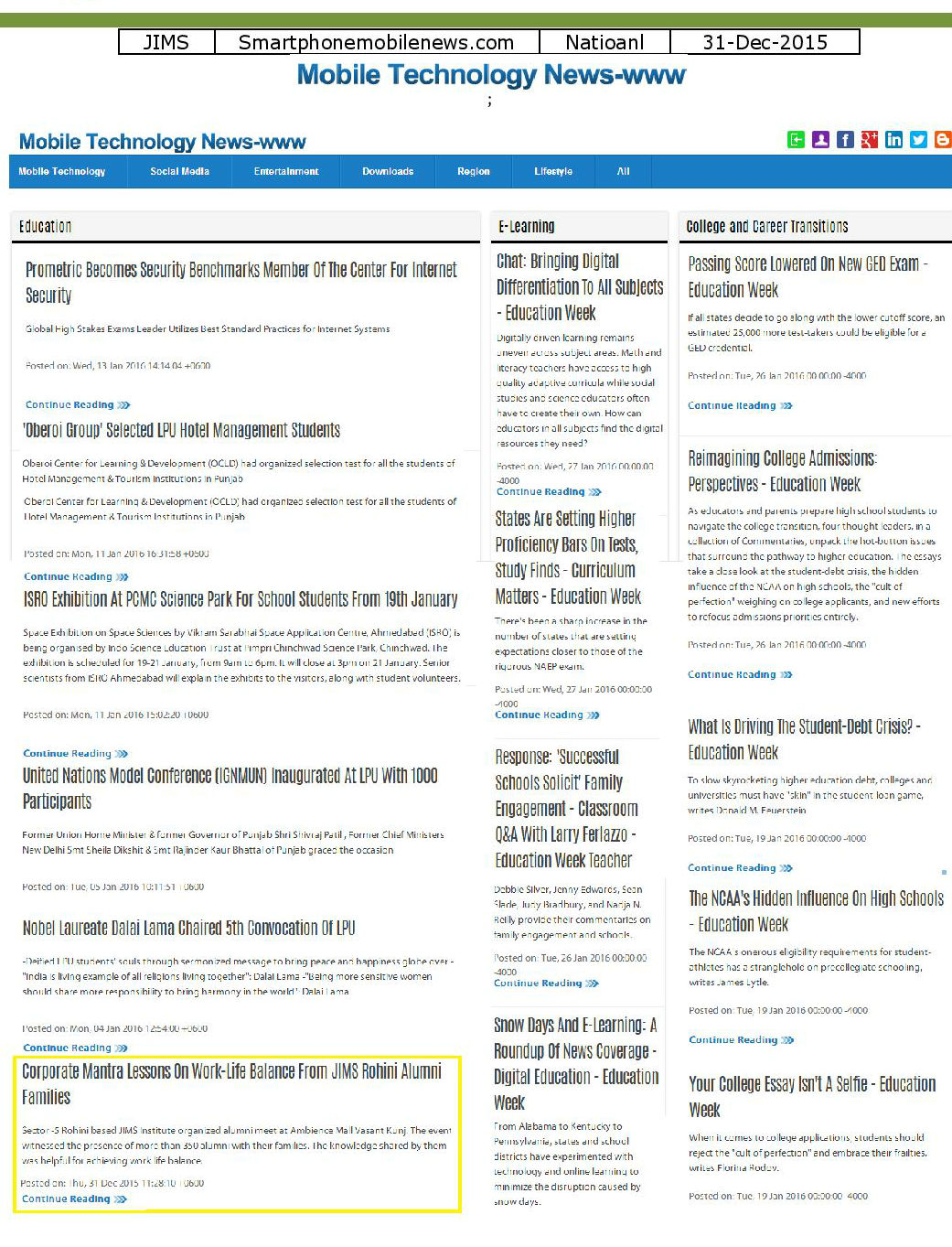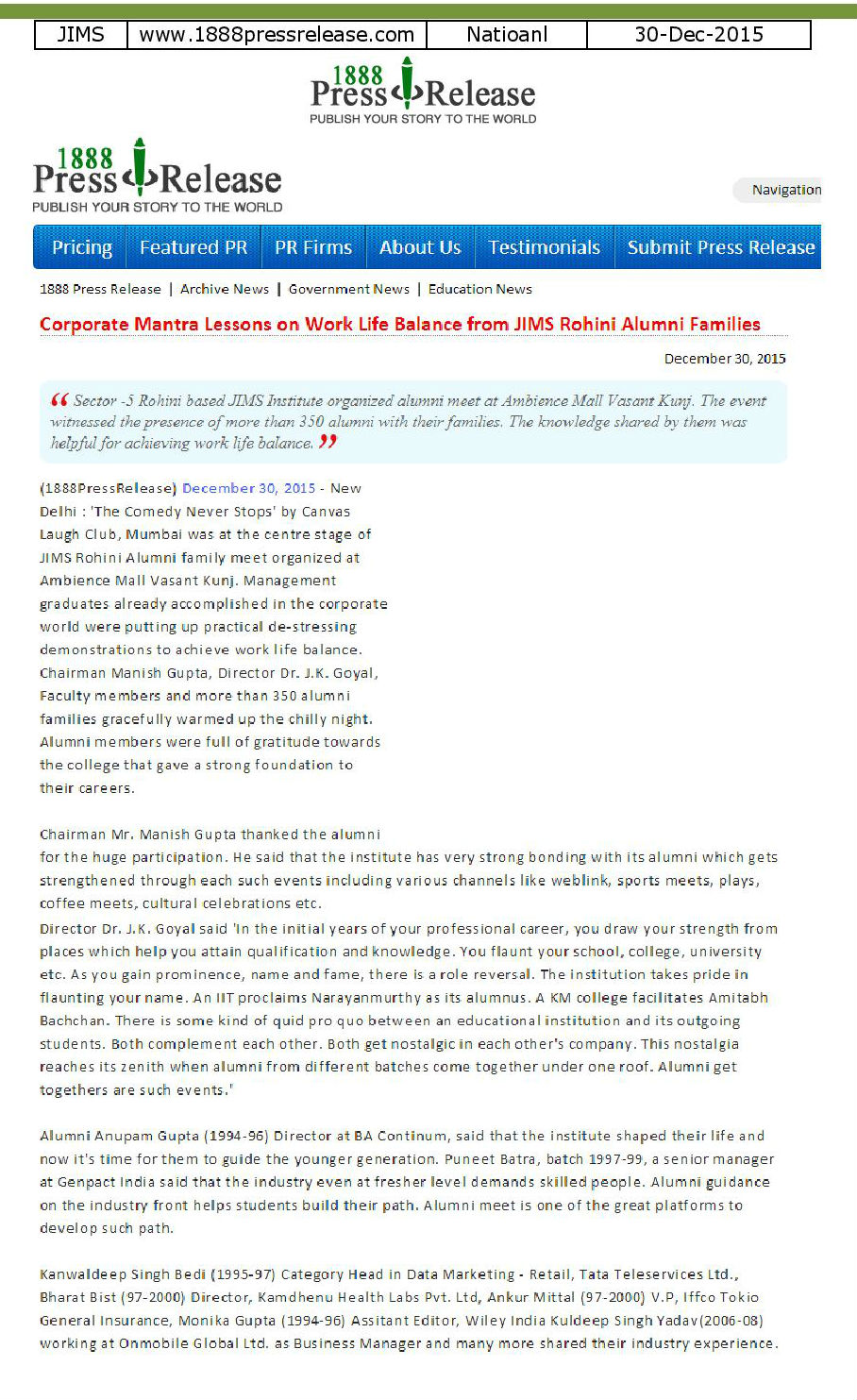 | Article on Director JIMS visit to lahore |