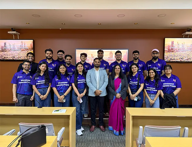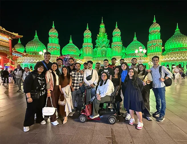 Our International Immersion Program provides exposure to global business. The recent immersion program in Dubai featured an industry visit to UltraTech Cement and cultural experiences like visit to Burj Khalifa, offering students practical insights.
